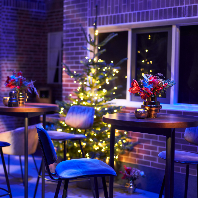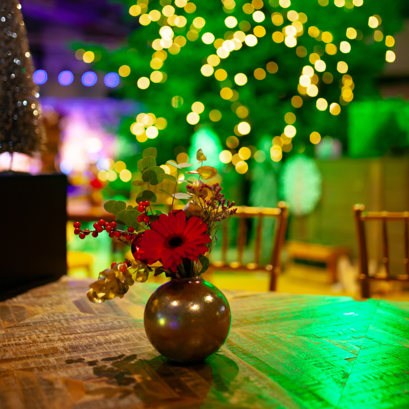Samen met ons partnerbedrijf BloemBloem Eventstyling verzorgen we de complete aankleding van jouw kerst- of eindejaarsfeest.