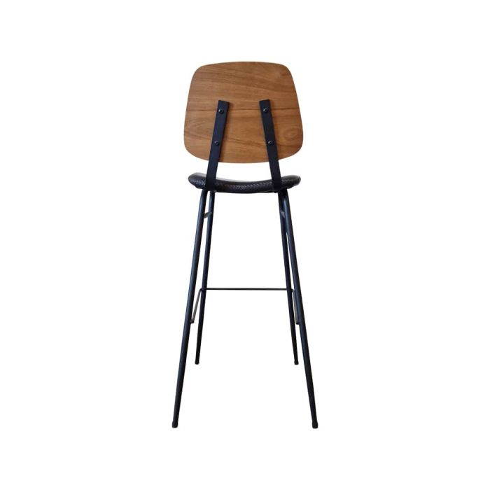De Cavallo barkruk is een stoere, zware retro barkruk met een metalen frame, bekleed met zwart kunstleer en een rug van hout.Specificaties