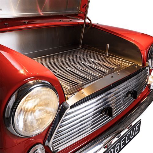 Deze bijzondere barbecue is dé eyecatcher op ieder evenement! Bij het openen van de moterkap beschikt deze Mini carbecue over een 2-pits gas-barbecue. In de grill van de auto zitten twee regelknoppen waar de grill bediend kan worden. Met de meegeleverde afstandsbediening kunnen op afstand de koplampen, knipperlichten, spots in de motorkap en de LED-verlichting bediend worden. De gasfles is weggewerkt achter het wiel van de auto. Exclusief propaangas.
